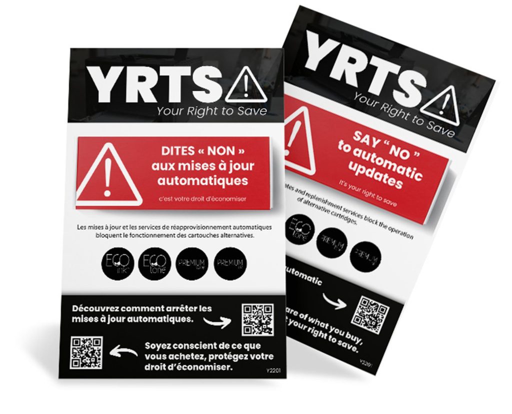 The default setting of a printer enables automatic firmware updates, so they occur without your knowledge or consent. This may seem convenient, but in reality, it’s not. These updates have one sole purpose: to detect and block the use of alternative cartridges, forcing you to buy expensive, manufacturer-sold original cartridges. By blocking alternative cartridges, the automatic firmware updates of your printer will significantly increase your printing expenses and deprive you of your right to save.